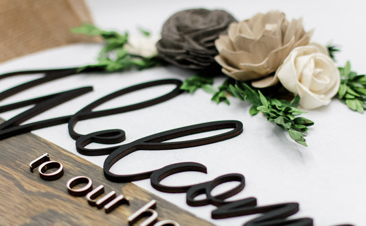 3D Welcome to our home Door Hangers w/Sola Wood Flowers